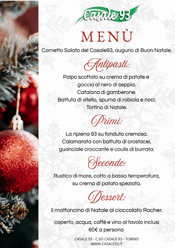 Prenota ora il tuo pranzo di Natale da Casale93. Fallo prima di tutti. Non fartelo raccontare